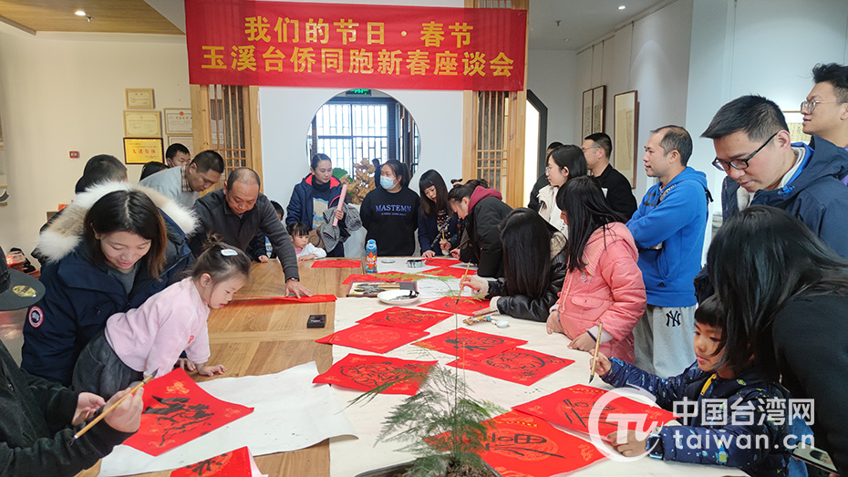 “我們的節日·春節”玉溪市臺僑同胞新春座談會寫春聯現場(玉溪市臺辦供圖)
