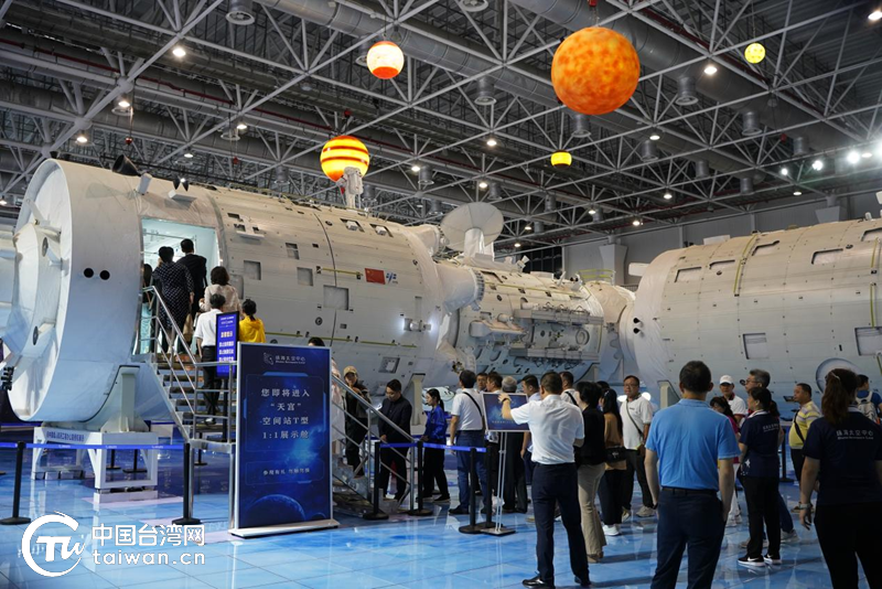 考察團的臺商們走進1:1“天宮”空間站。(中國臺灣網 王大勇 攝)