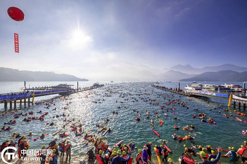 代表團參加“日月潭泳渡”活動。(中國臺灣網發)