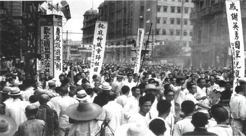 1945年10月25日,中國戰區臺灣省受降儀式在臺北舉行,日本駐臺總督安藤利吉在臺北公會堂內向中國臺灣省行政長官陳儀呈交降書、繳械投降,臺灣、澎湖列島重歸中國主權管轄,再也不是日本殖民地。“臺北40余萬市民……老幼俱易新裝,家家遍懸彩燈,相逢道賀,如迎新歲,鞭炮鑼鼓之聲,響徹雲霄,獅龍遍舞于全市,途為之塞。”“家家戶戶,無比歡欣,祭祖謝神,向先民冥中告知臺灣已回歸祖國。”10月25日這一天,也在1946年被確定為“光復節”,成為臺灣民眾舉家歡慶的歡樂節日。