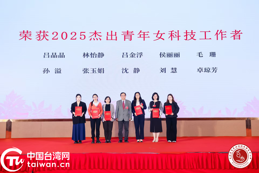 “2025傑出青年女科技工作者”獲獎者分批上臺接受榮譽證書。(中國臺灣網發)