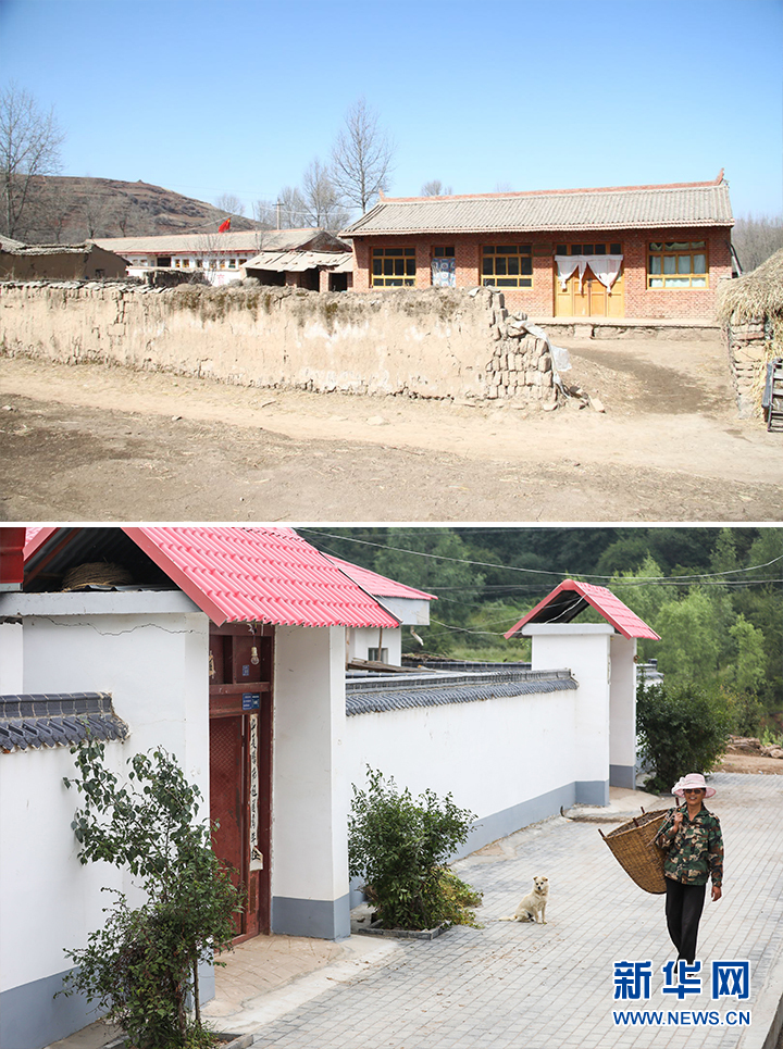 拼版照片:上圖為2013年3月4日拍攝的甘肅省定西市渭源縣元古堆村民居。新華社發(吳魯 攝);下圖為2020年8月22日在渭源縣元古堆村拍攝的民居。新華社記者 馬希平 攝
