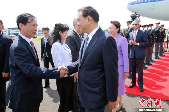 經中歐雙方商定,中國國務院總理李克強于當地時間6月28日下午乘專機抵達比利時首都布魯塞爾,出席第十七次中國歐盟領導人會晤。李克強總理夫人程虹同機抵達。中新社發 劉震 攝