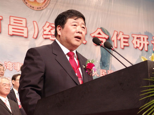 吳新雄指出,當前我們經濟發展面臨著嚴峻的國際形勢,贛臺兩地進一步加強經貿合作顯得尤為重要和必要。今年4月,胡錦濤總書記提出了“建立互信、擱置爭議、求同存異、共創雙贏”的“十六字方針”,為開創兩岸關係和平發展新局面提供了重要保障。臺灣地區出現了加強兩岸交流合作的重大變化,為進一步加強贛臺經貿合作創造了極為有利的條件和機遇。這些年來,贛臺兩地通過共同努力,友好往來日益密切,經貿合作不斷加強,給兩地同胞帶來了切實的利益。截至今年上半年,江西累計批準合同臺資項目2256個,合同臺資額85億美元,實際利用臺資32億美元。臺灣已經成為江西利用外資的主要來源地,許多在贛臺資企業也獲得了豐厚的回報。現在我們又設立了5個臺資企業轉移承接基地和5個臺商創業園。這為進一步加強贛臺經貿合作奠定了牢固的基礎,創造了良好的條件。