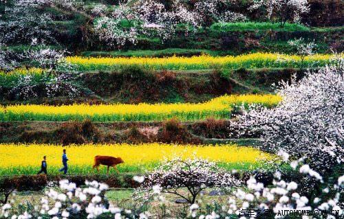 每年3月下旬,是貴州貴定音寨5萬畝油菜花盛開的時候。貴定縣自2005年舉辦首屆“金海雪山”旅遊文化節以來,音寨就以金黃色的油菜花翻卷起的千重浪、漫山遍野李花影映出的皚皚雪山,吸引了眾多中外遊客。(攝影:sjhshitou)