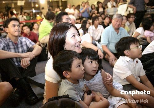 9月25日晚,香港市民在太空館觀看“神舟七號”升空直播。 中新社發 張勤 攝
