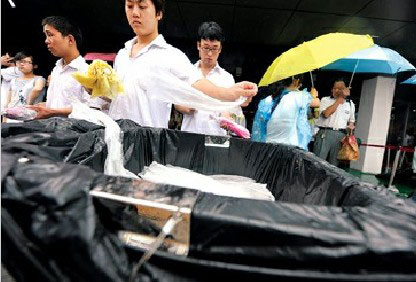 此外,網民的規勸行動還從網上衍生到世博園內。一個由上海大學生在網上自發組成的“低塑世博,入園行動”公益小組,如今每周末都會進入世博園區,主動收集遊客隨地丟棄的垃圾,勸導遊客少用塑料用品、勿亂扔垃圾。大學生們說,他們將一直堅持到世博會結束。