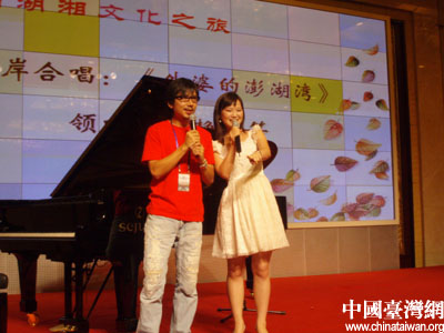 宴會開始之後,兩岸學子還進行了精彩的才藝表演,其中來自臺灣的徐筠芷彈奏的《瀏陽河》得到了在場所有人的好評,彈到動情之處,聽眾都報以熱烈的掌聲叫“好”。由湖南師范大學的張靜弘和臺灣華新國際機構謝憲忠合唱的《外婆家的澎湖灣》將宴會推向了高潮,兩岸學子在歡樂融融的氣氛下度過了愉快的時光。(謝曉萍)